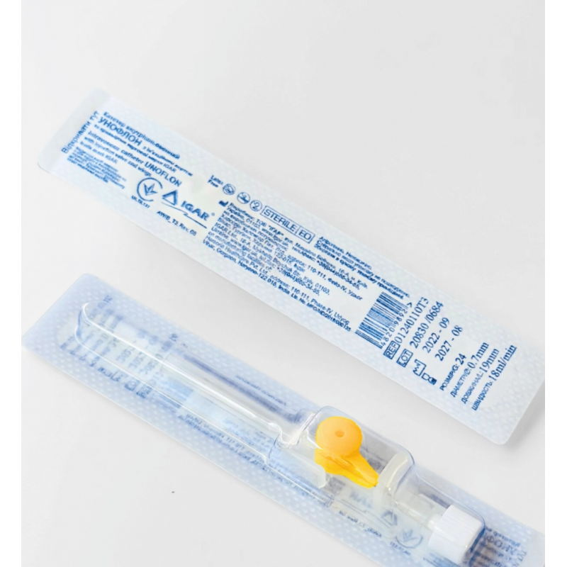 Катетери внутрішньовенні УНОФЛОН з ін’єкційним портом та крильцями